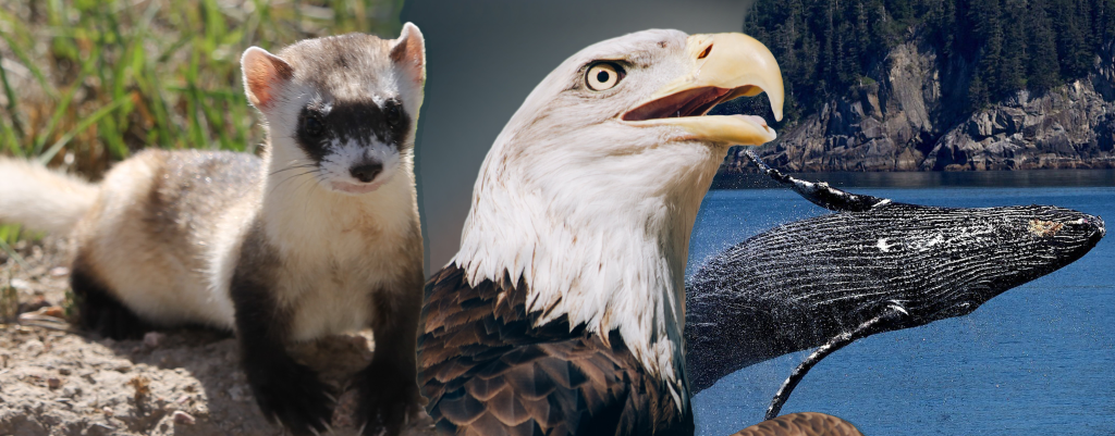Its goal was (and is) to protect endangered plants and animals and save them from extinction. Some of the first animals the ESA protected were the Humpback Whale, Black-Footed Ferret and Bald Eagle