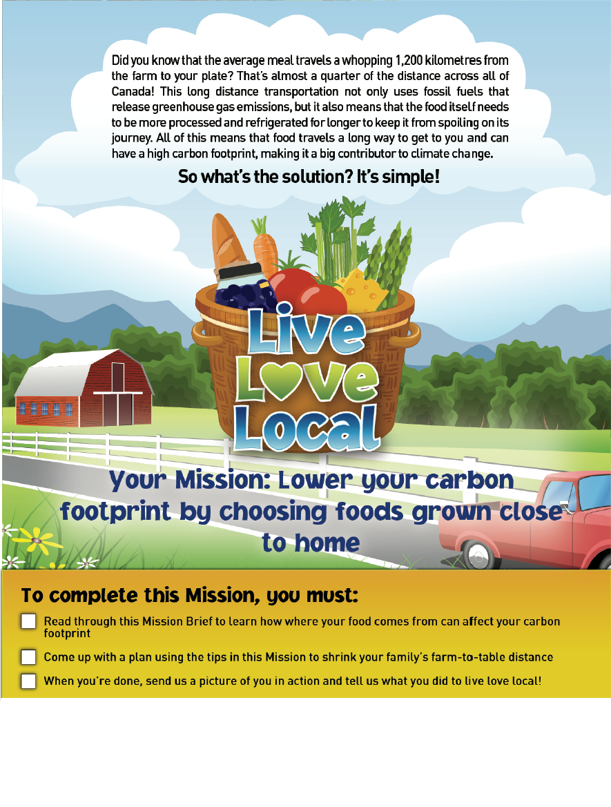 Did you know the average meal travels a whopping 1,200 km to get from farm to table? This long distance journey releases fossil fuels and requires food to be more processed and refrigerated to stay fresh, which adds up to a considerable carbon footprint. That’s why we’re challenging members to #livelovelocal by choosing foods grown close to home!