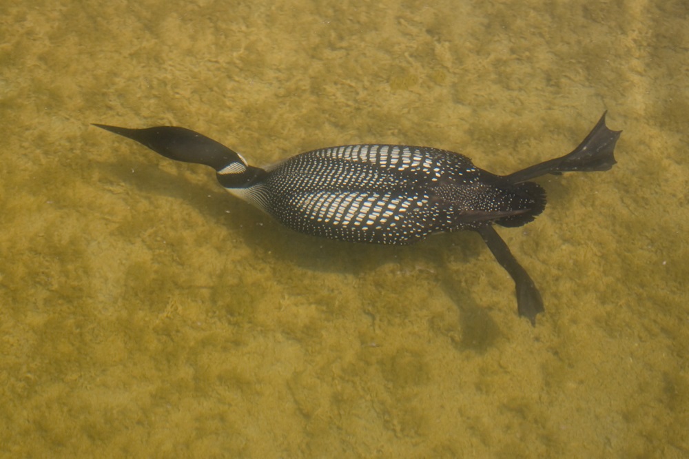 Emma described the common loon as ranging between a Mallard duck and a Canadian goose. It can in fact grow as big as 32 inches, with its wingspan going up to 54 inches, not far from a small goose!