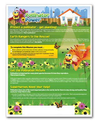 The Pollinator Power Mission teaches kids about the importance of pollinators, along with the threats that bees, butterflies and other pollinating species are facing. By accepting the Pollinator Power Mission, kids commit to planting a pollinator garden in their own backyard.