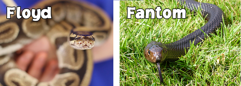 Meet Animal Ambassadors Floyd the ball python and Fantom the black pine snake! Arenโt they adorable?