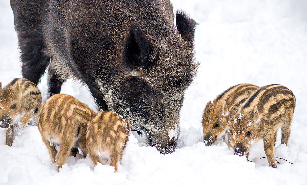 Winter is not a problem for the Canadian wild pigs! They have a thick, bristly coat that protects them.