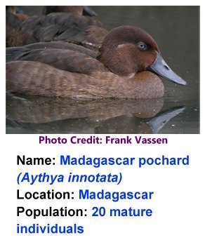 To see full list: http://www.zsl.org/conservation/news/the-100-most-threatened-species,997,NS.html